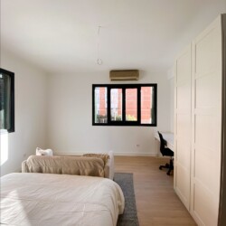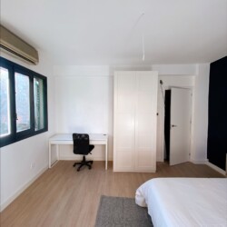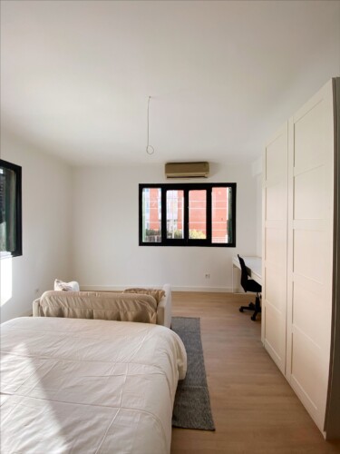 El alojamiento cuenta con más de 150 m2, 7 habitaciones en total y 2 baños completos con ducha, lo que lo convierte en un espacio amplio y confortable para vivir y estudiar. La habitación doble está equipada con una cómoda cama doble, sábanas y almohadas, un escritorio con silla para estudiar, un gran armario con mucho espacio de almacenamiento y una ventana que permite la entrada de luz natural.