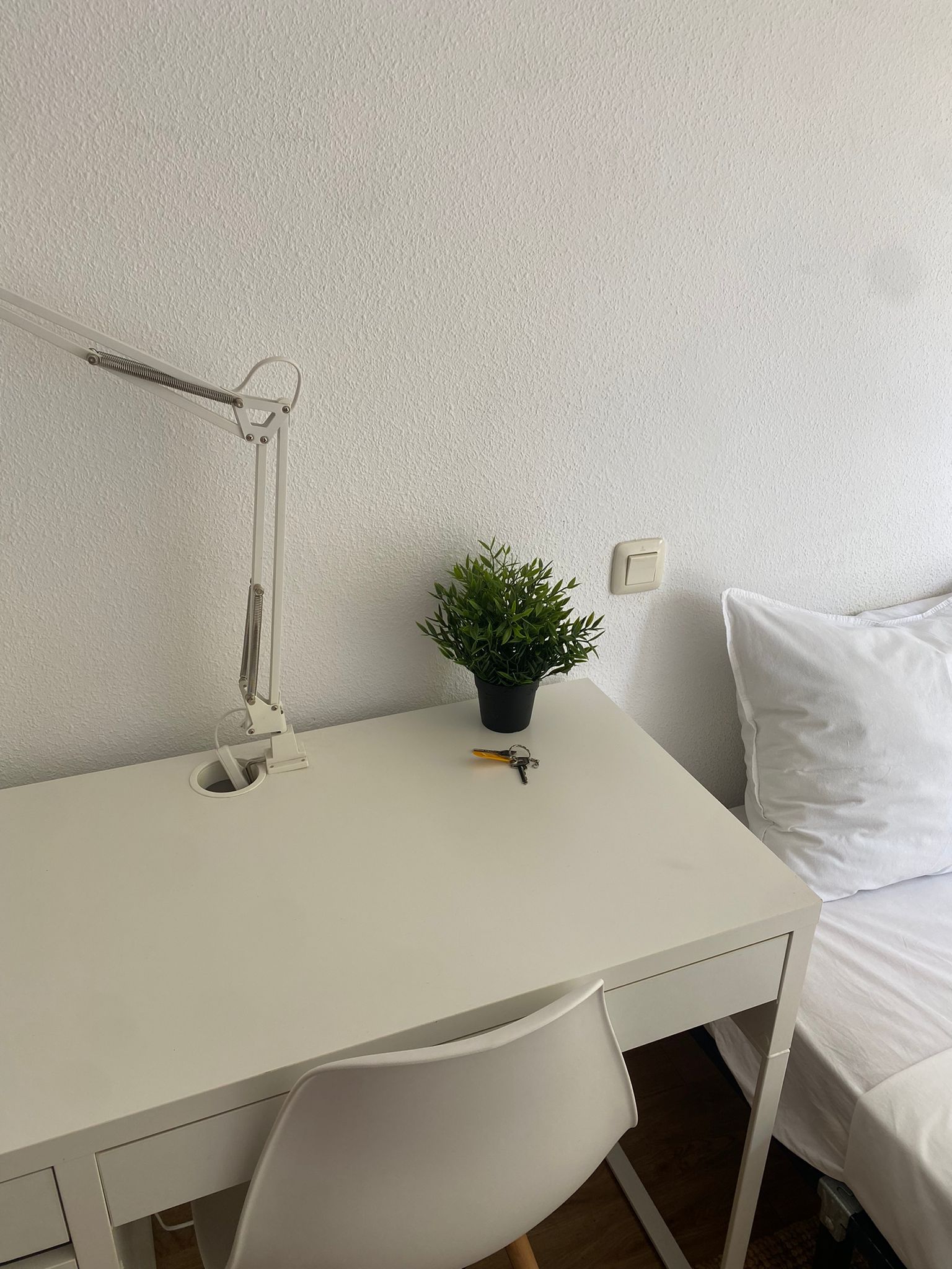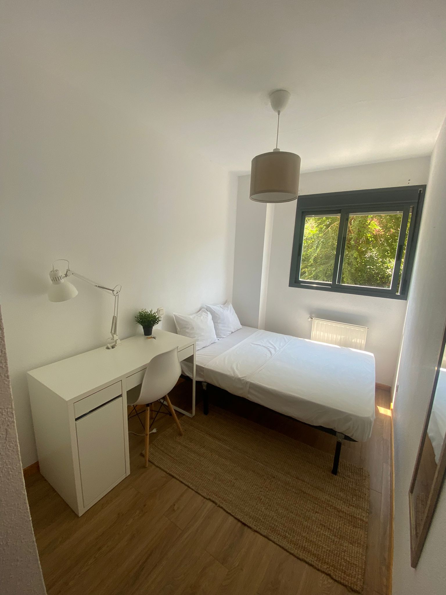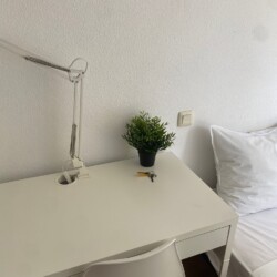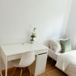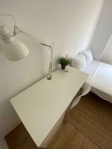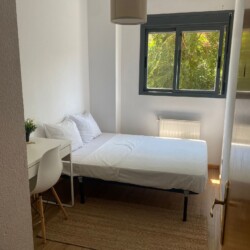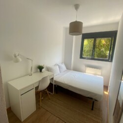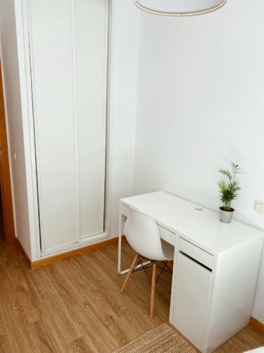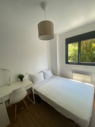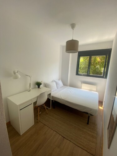 Our bedroom is the perfect place for students and young professionals to call home during their stay in Madrid. With a comfortable bed, ample storage space, and a calming color scheme, you’ll have everything you need for a peaceful and productive stay. Plus, with a large shared kitchen and 2 bathrooms (one of which is private), you’ll be able to live comfortably and conveniently while you work or study.